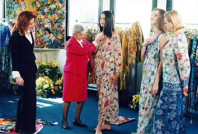 Lea Gottlieb worked 12 hours a day for over forty years, starting early morning at the design table dealing with swatches, orders, and drawing boards. Until her retirement in 2002, every collection of Gottex was designed by her on a yearly basis; she herself dealt with the selection of materials; with manufacturers, distributors, and customers who she had personally met all over the world.